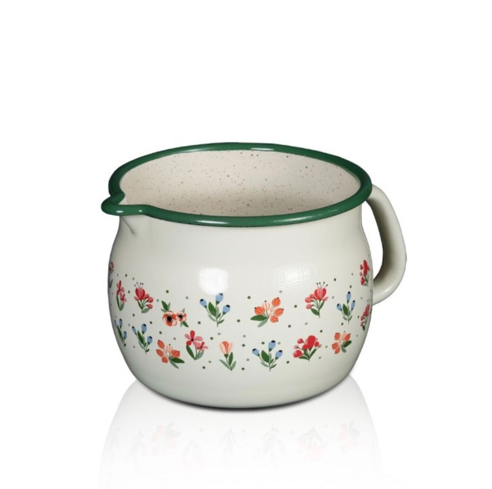 Das Metalac bauchige Kännchen „Blumen Design“ 10 cm / 0,8 l ist ein emailliertes Kochgefäß ideal für die Zubereitung und das Servieren kleiner Mengen von Speisen oder Getränken. Mit seinem charmanten Design und seiner Funktionalität ist es ein praktisches und ästhetisches Küchenutenstil.